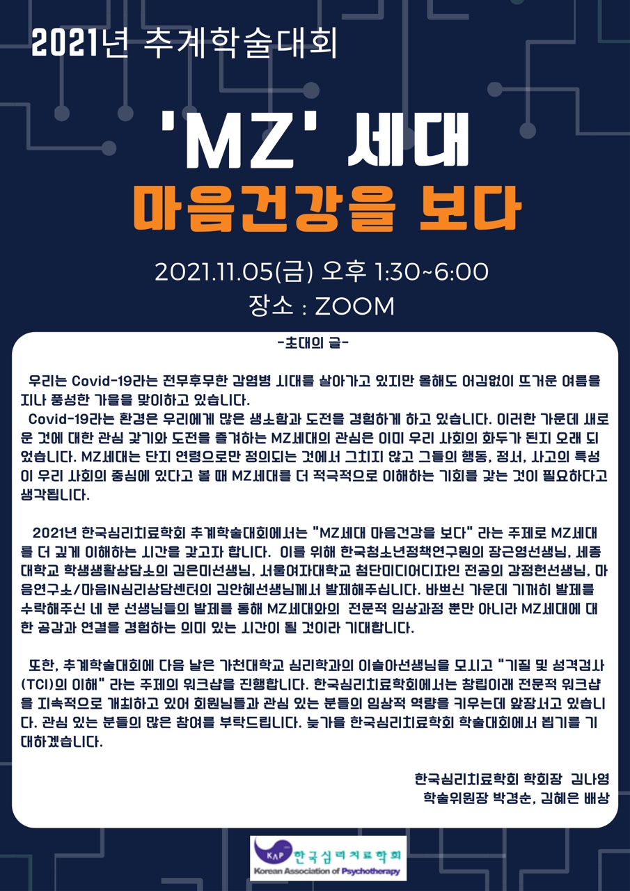 <'MZ'세대 마음건강을 보다>주제로 11월 5()-11월 6일(토)에 열립니다.